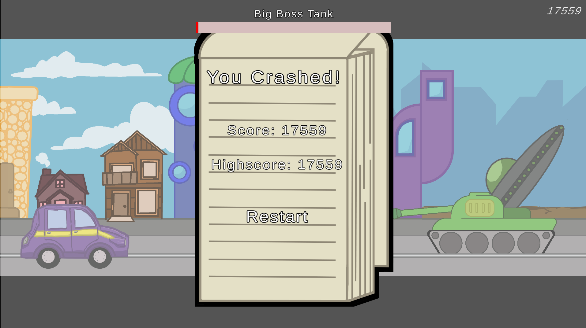 In Hijack Run, you play as a driver racing against time and obstacles to fight bosses and get a good high score. Players have to dodge obstacles and defeat bosses to rack up points - however make one wrong move and it’s game over. This game was developed by our team: Callum Heap, Sean Cross, Jacob Scott, Darcy McCully, Ian Sutherland and Karl Prouse. Our goal for this game was to give players a fun and engaging gameplay experience with a low barrier to entry by using simple and intuitive controls. We built this game around the main goal of creating a flow-state chill but fun gameplay experience, and added the elements of the driver, boss tank, traffic obstacles and unlimited increasing speed to give the player a growing sense of challenge as they progress.